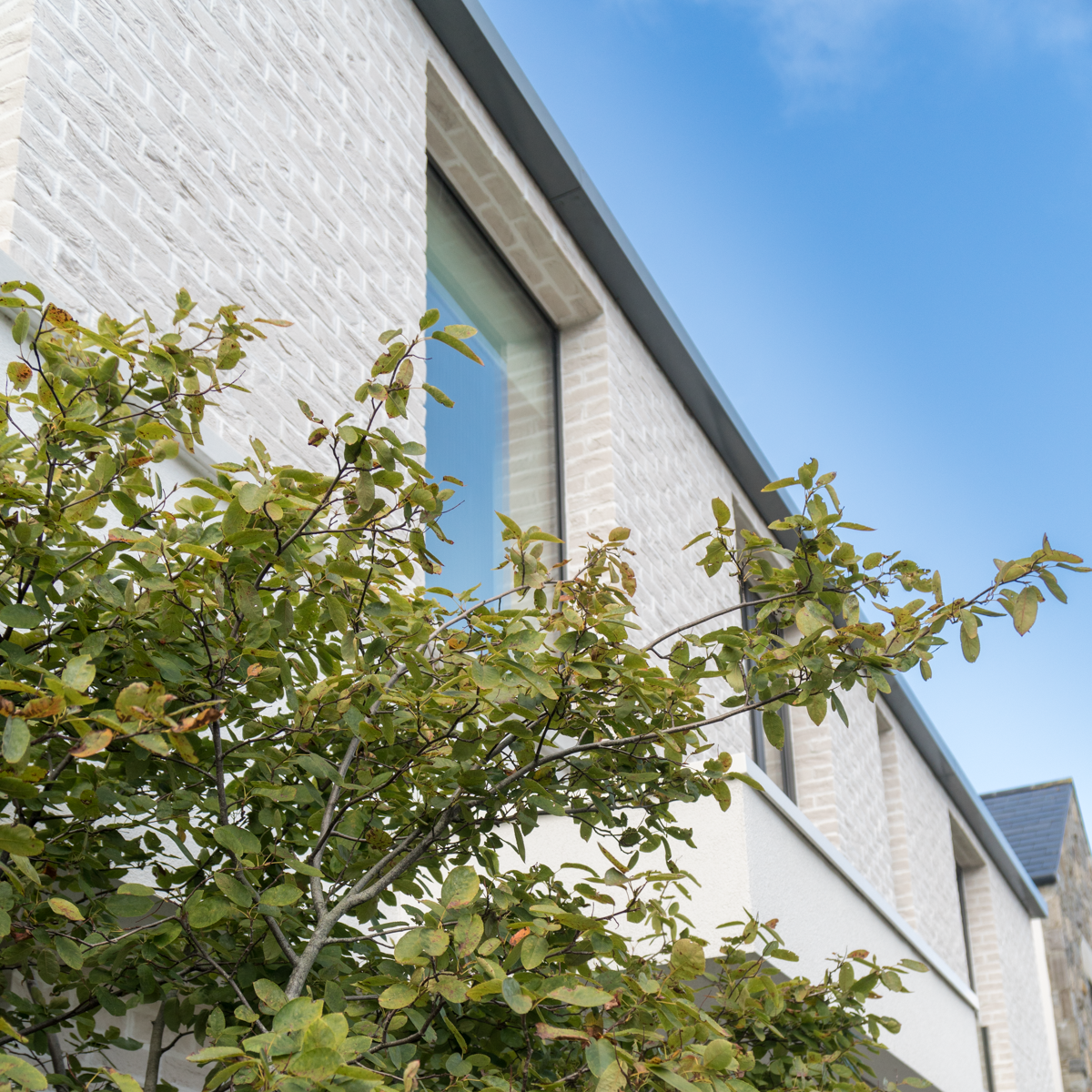Recently completed, this contemporary family dwelling was designed to appear understated and elegant yet fit within the context of a development of mixed style large detached dwellings. The ‘broken plan’ ground floor accommodation is designed around a central circulation corridor with the main living areas to the rear with access to the west facing back